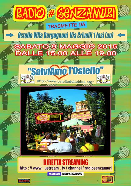 Senza categoria Radio senza muri a Villa Borgognoni Date: 02/05/2015Author: ostellodelleidee2015 0 Commenti Trasmissione diretta streaming da villa borgognoni Sabato 9 maggio h.15,00 – 19,00 Condividi: Fai clic per condividere su X (Si apre in una nuova finestra) X Fai clic per condividere su Facebook (Si apre in una nuova finestra) Facebook Mi piace Caricamento... Correlati