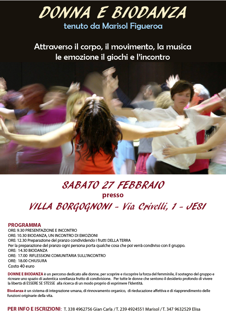 Senza categoria Donna e Biodanza Date: 17/02/2016Author: ostellodelleidee2015 0 Commenti Sabato 27 Febbraio Villa Borgognoni – Via Crivelli 1, Jesi ” Percorso dedicato alle donne per riscoprire la forza del femminile” Donne e biodanza Condividi: Fai clic per condividere su X (Si apre in una nuova finestra) X Fai clic per condividere su Facebook (Si apre in una nuova finestra) Facebook Mi piace Caricamento... Correlati