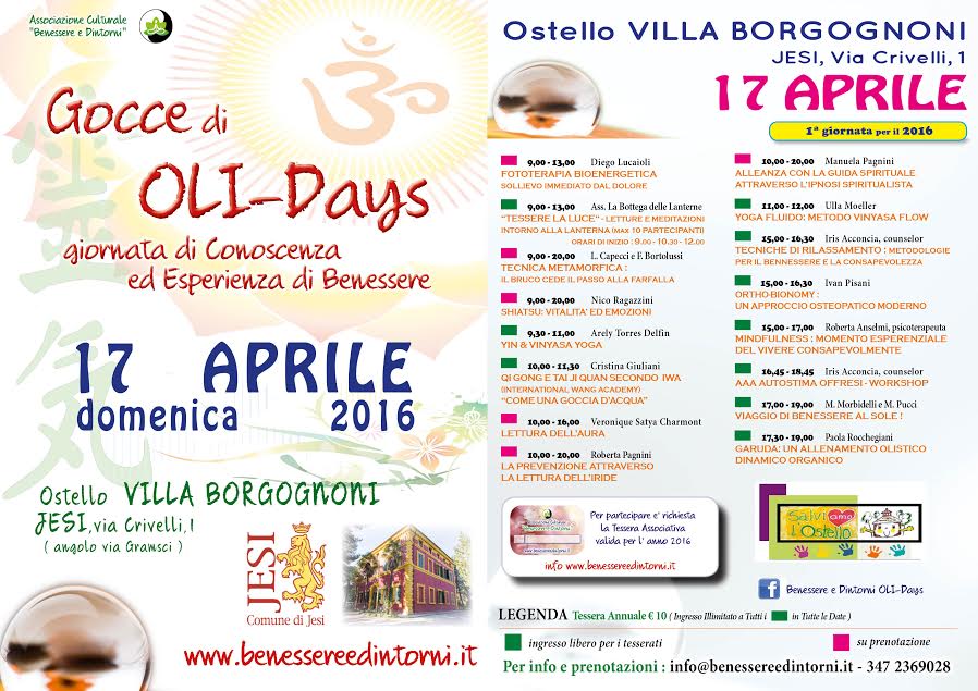 Senza categoria Gocce di oli-days a Villa Borgognoni Date: 11/04/2016Author: ostellodelleidee2015 0 Commenti GOCCE DI OLI-DAYS LA GIORNATA OLISTICA DELLE MARCHE h. 09.00 – 20.00 Condividi: Fai clic per condividere su X (Si apre in una nuova finestra) X Fai clic per condividere su Facebook (Si apre in una nuova finestra) Facebook Mi piace Caricamento... Correlati