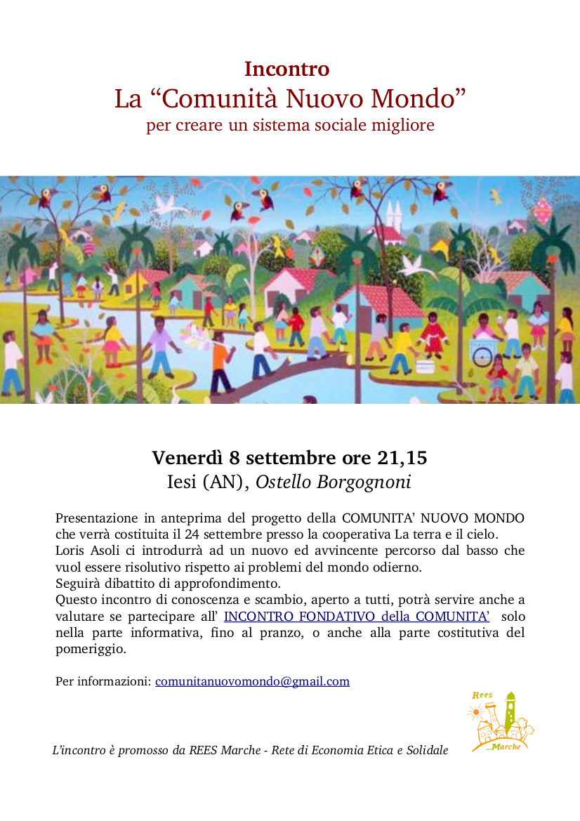 valutare se partecipare all’INCONTRO FONDATIVO della COMUNITA’ del 24 settembre,