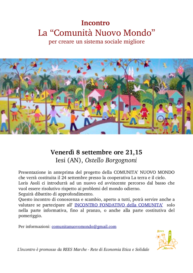 Sarà presente Loris Asoli, coordinatore del percorso, che ci introdurrà a questo interessante progetto,finalizzato ad una trasformazione positiva, e dal basso, del nostro sistema sociale.